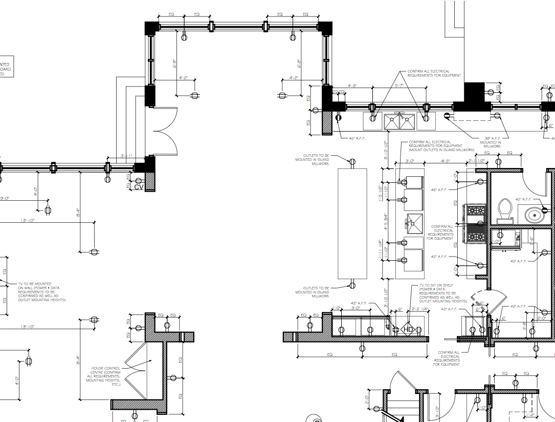 There are some great design and proposal software solutions on that market that provide tools that enable you to create floor plans and other design drawings for your integration company. The problem with the CAD solutions from these vendors is that they still require a dealer to train staff, then dedicate time to creating these drawings in house. In the end the floorpans that result are still not compatible with industry standard AutoCad. They are useful internally but can not be used by the architect or builder nor can they be added to the master drawings. To do so would require the dealer to use AutoCad (costly), with trained staff (costlier), and invest considerable time (even costlier). Give the job to us instead. Our trained and experienced draftsmen will produce a finished AutoCad floor plans with your devices and wire numbers marked on a proper low voltage layer along with PDF copies.
